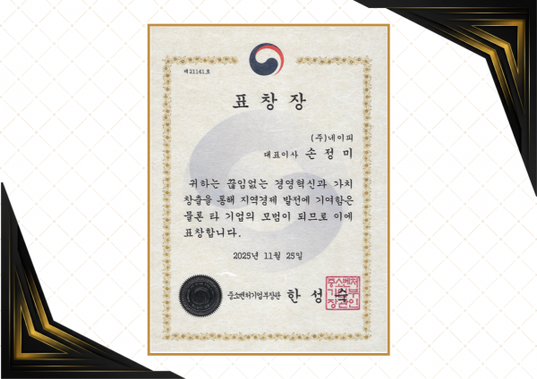 중소벤처기업부장관 표창장 수상